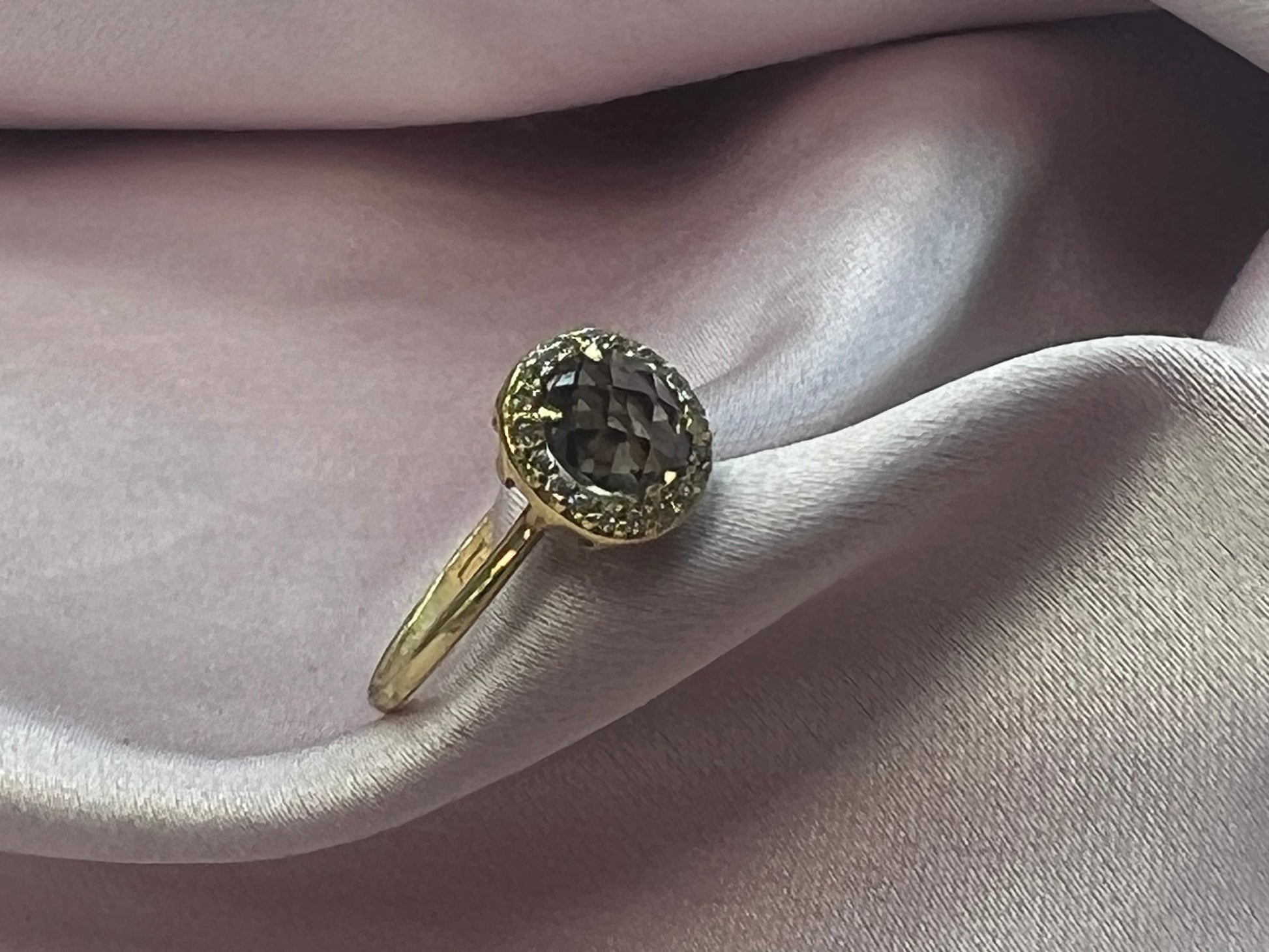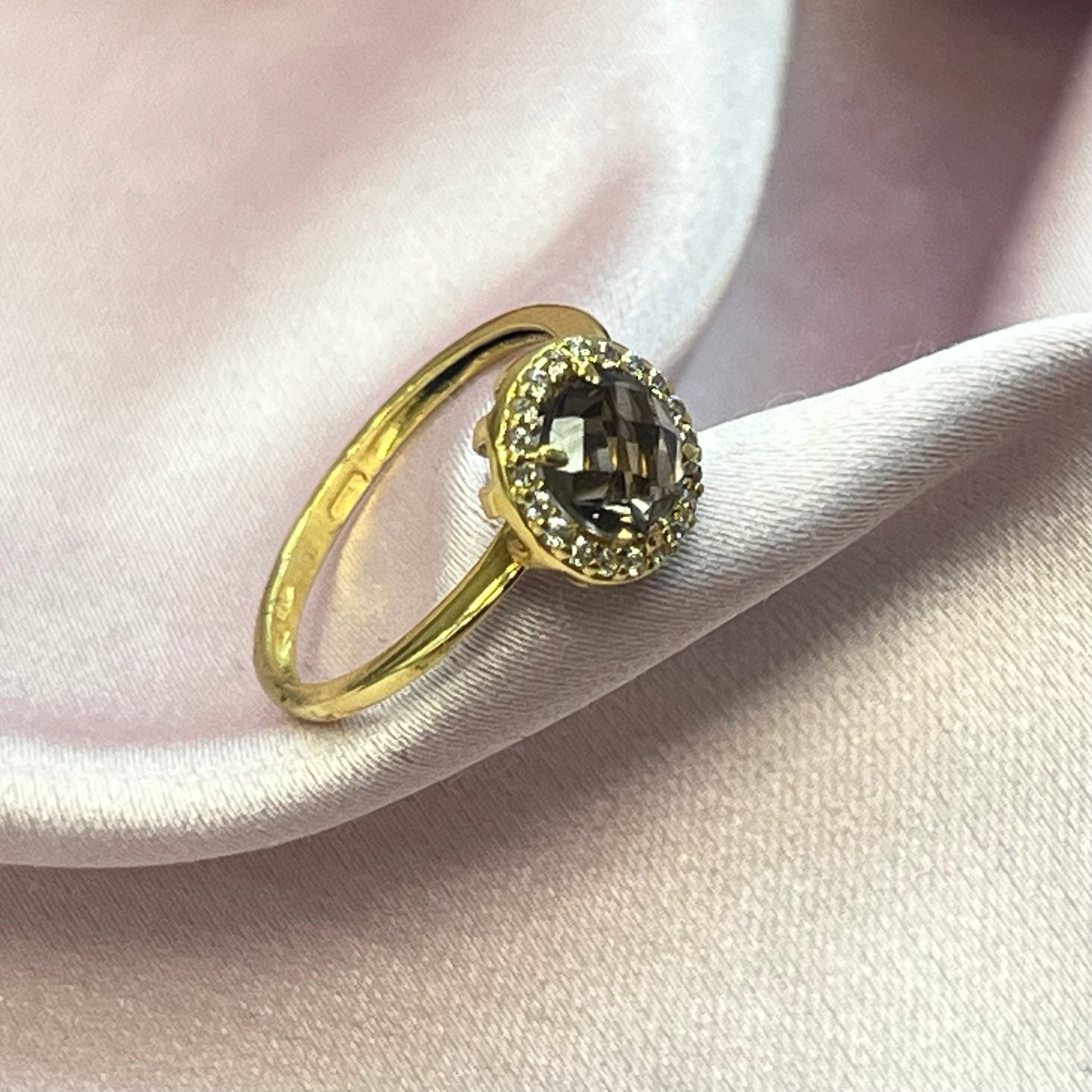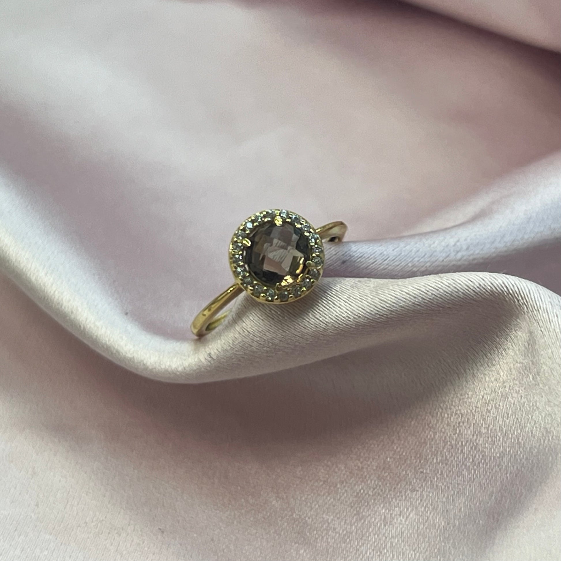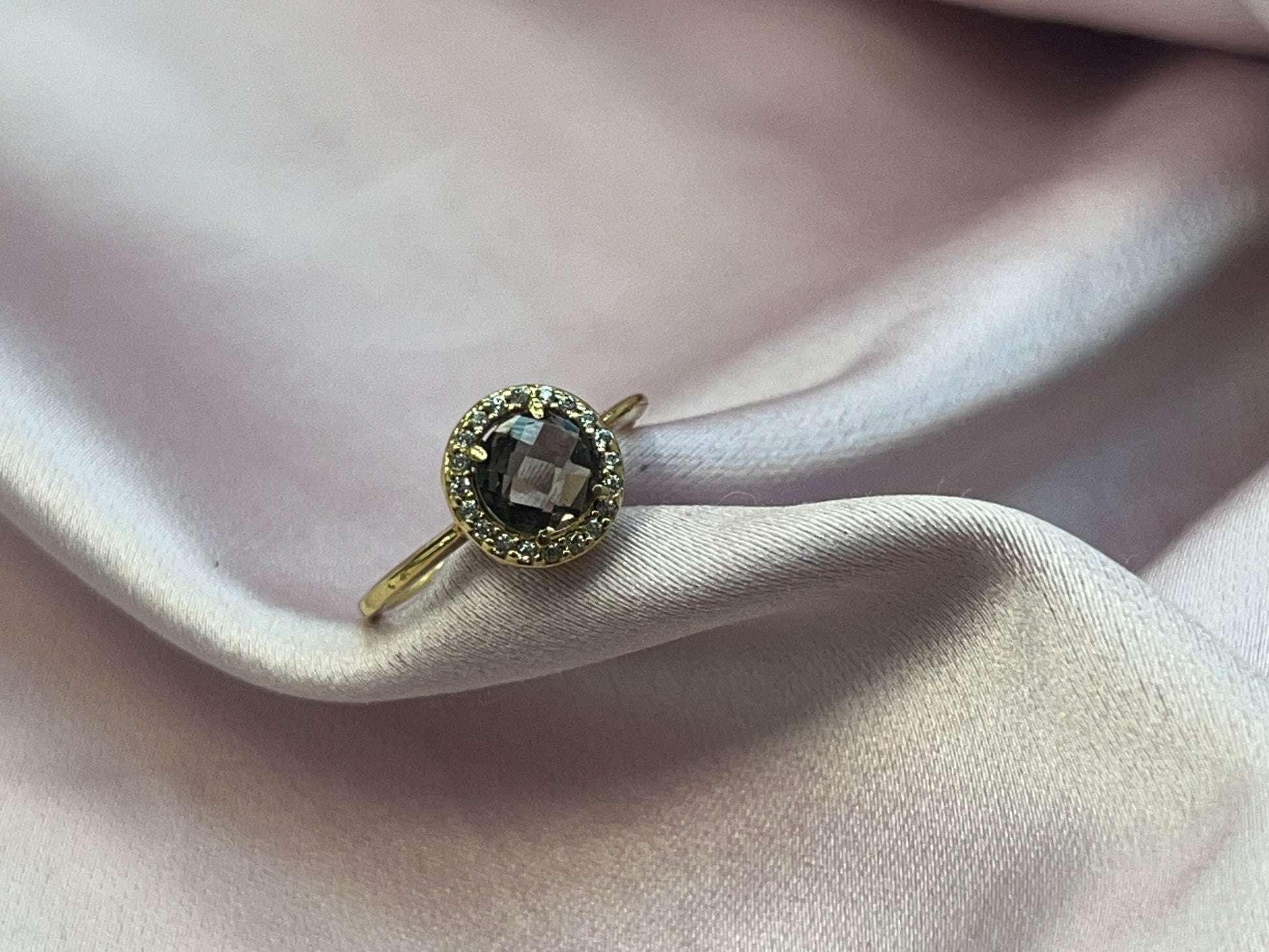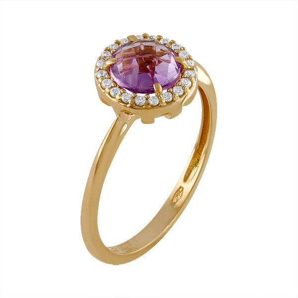 Anillo en Oro Amarillo 18 kltes. 750mlm. (1 amatista briolet 6,00mm.) (20 zirconitas)