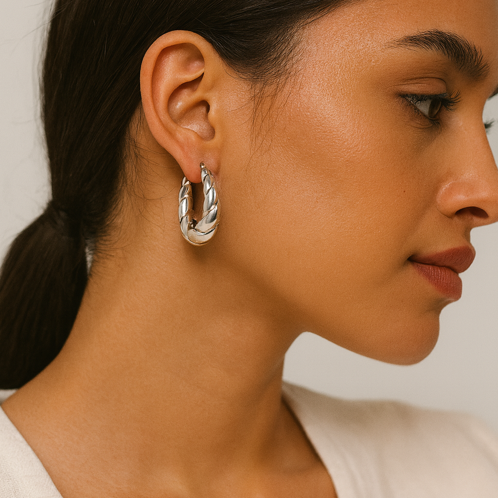 Aros Argollas alargadas en plata 925 y plata con baño de oro con doble broche