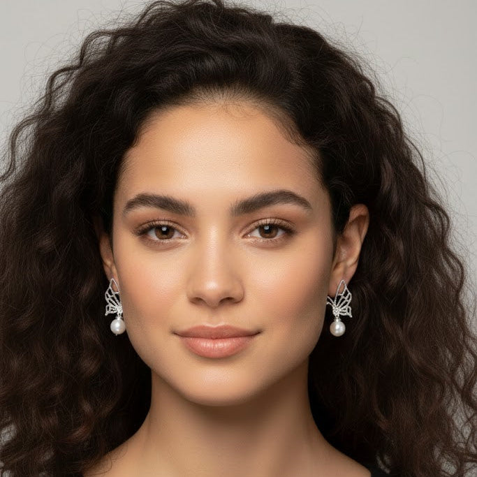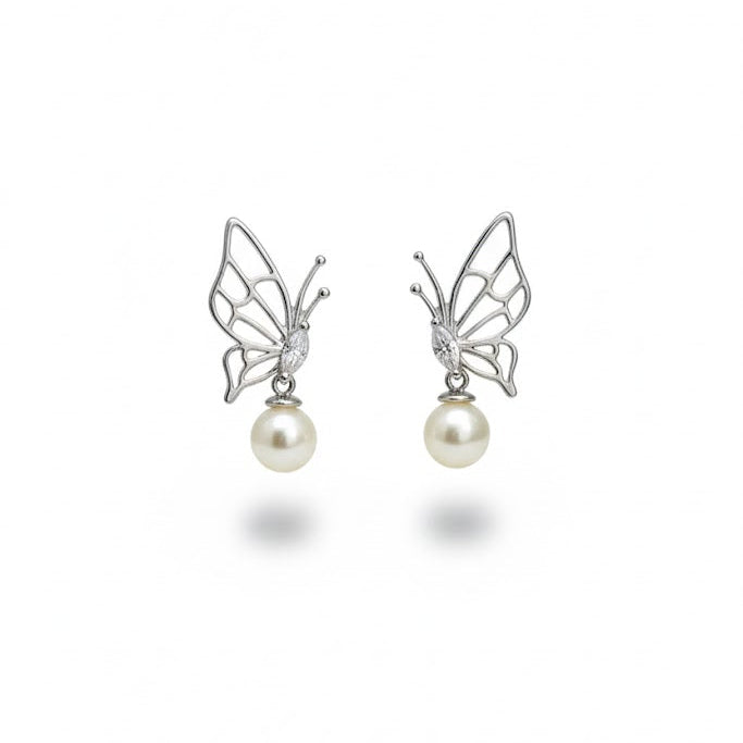 Aros modelo Mariposa perlada en plata 925, y perlita